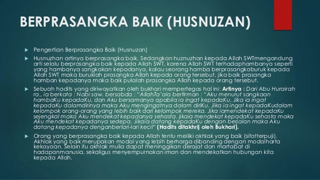 Artinya, berbaik sangka dan menghilangkan kedengkian sesama muslim yang berbeda paham dari kita merupakan sebuah prasyarat bagi menjadi muslim yang baik, muslim yang bakal menjadi penghuni surga kelak. Dalam Alquran disebutkan bahwa tidak selayaknya suatu golongan mencela golongan yang lain karena bisa jadi golongan yang dicela itu lebih baik daripada golongan yang mencela atau yang menghina (QS. Al Hujuraat:11).